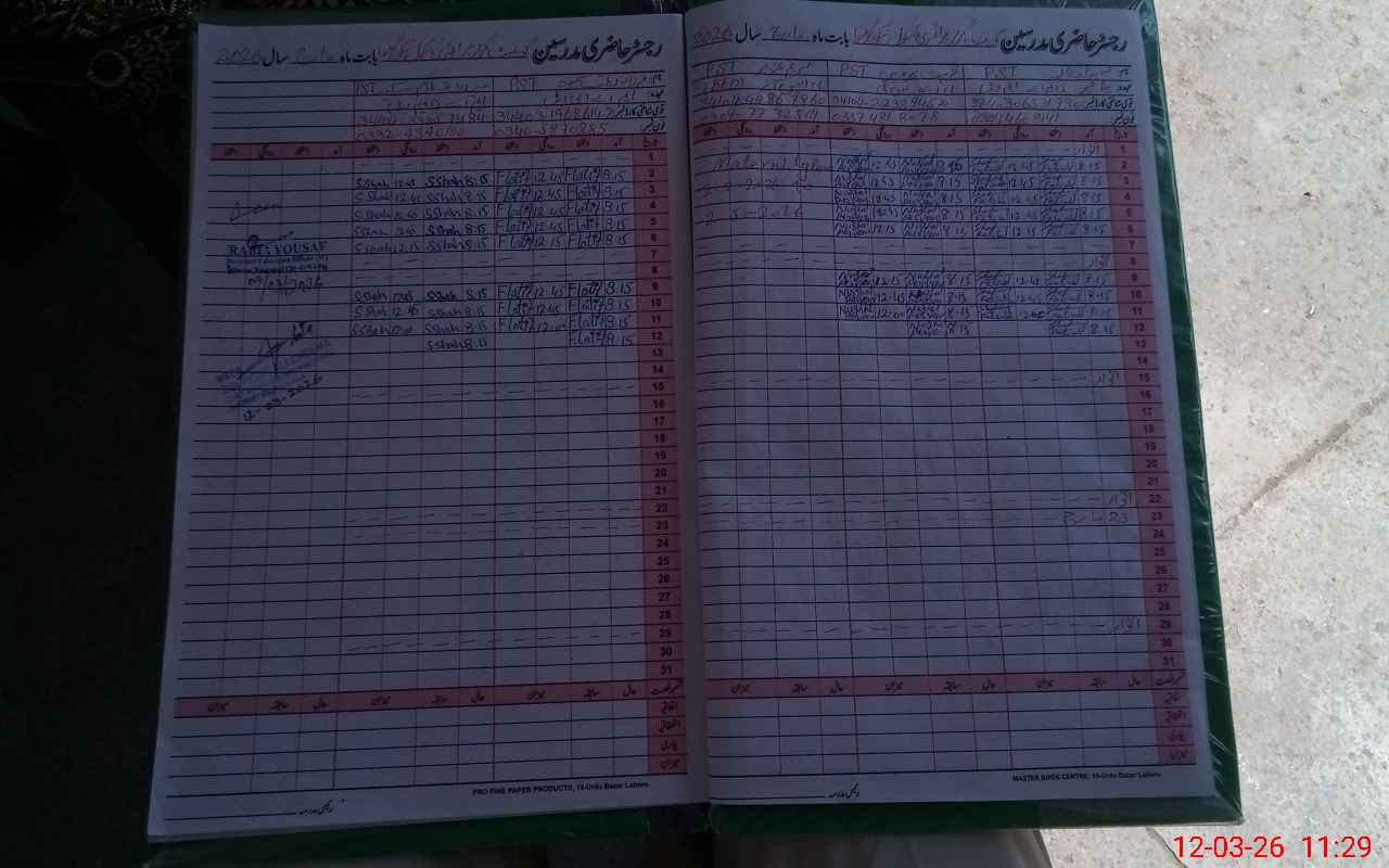 | Remarks (Use Separate Page if Required): Teacher Maryam Ozair is on maternity leave but leave is still not approved by any competent authority | |||||
