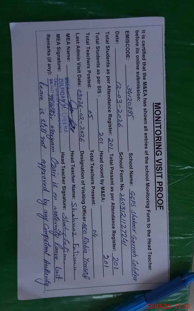 | EMIS Code: 34120385 | Name of School: GGPS SHAKOOR GARRAH SOHDRA | |||
