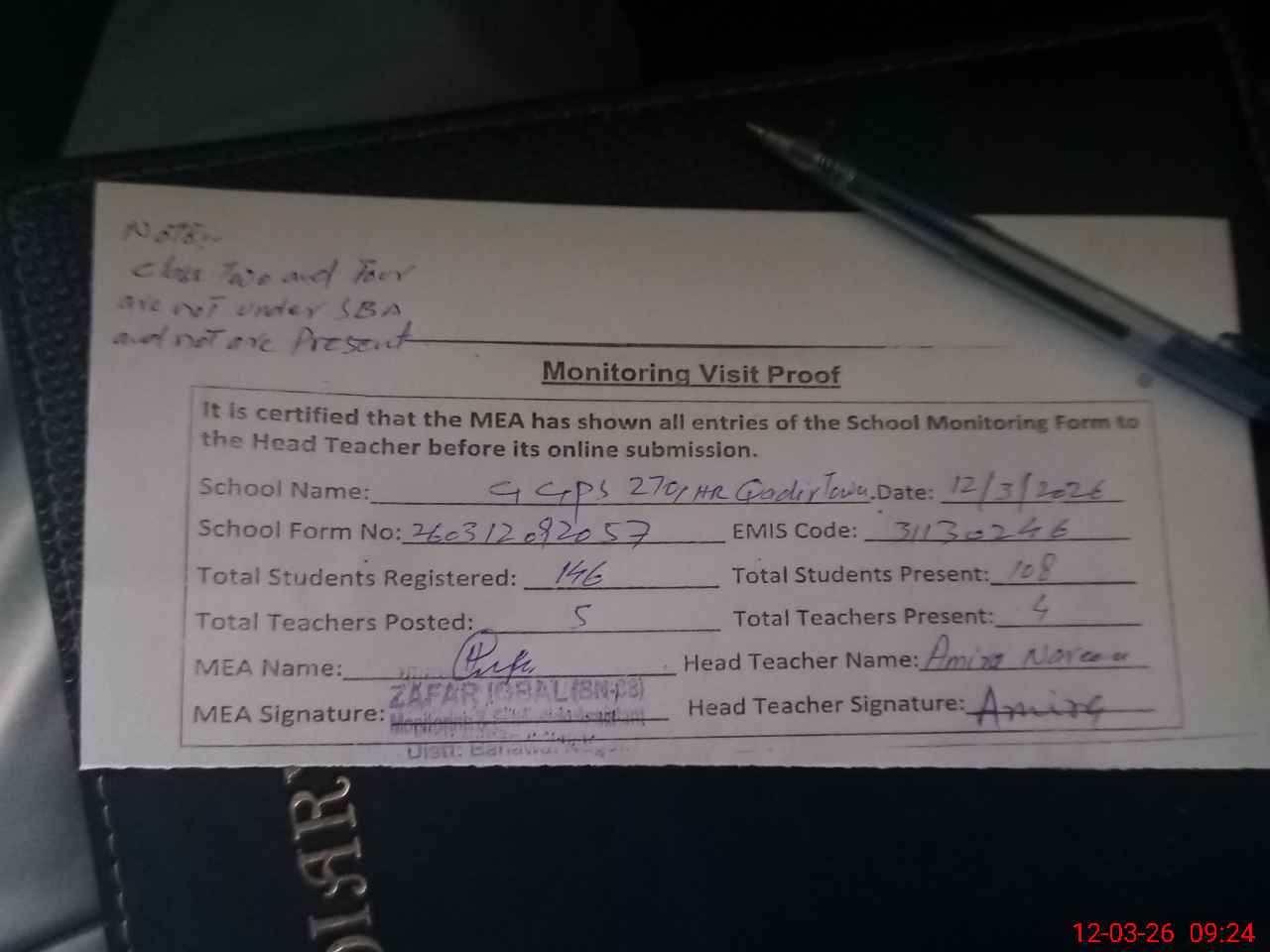 | Remarks (Use Separate Page if Required): Note class two and four are not under SBA and not present. GGPS 270 hr Qadir town code 31230246 FORTABBAS NSB record not shown and not maintain cashbook | |||||