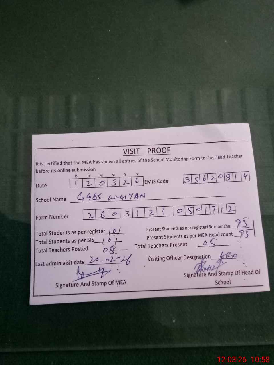 | EMIS Code: 35620814 | Name of School: GGES WAIYAN WALI | |||