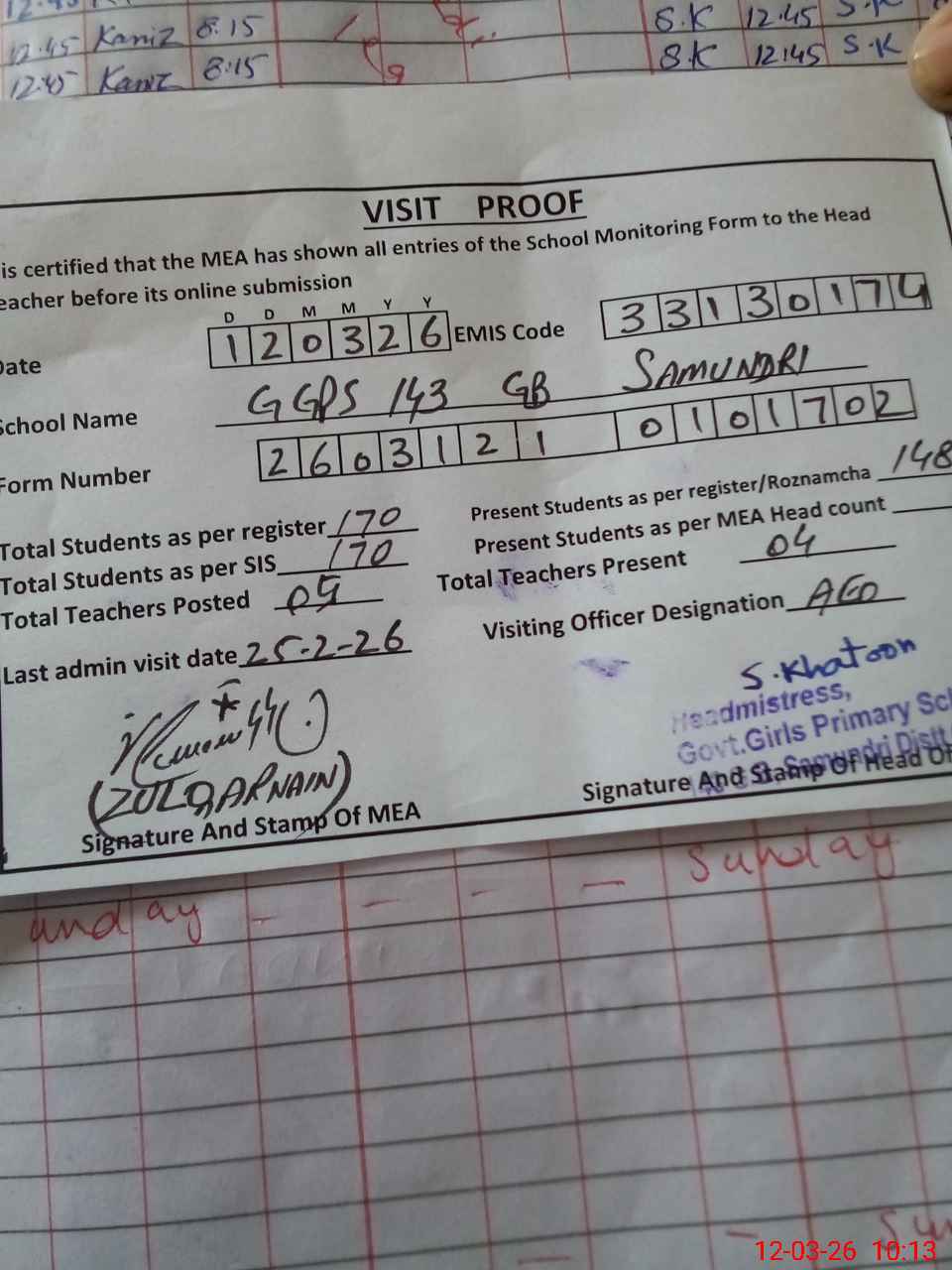 | EMIS Code: 33130174 | Name of School: GGPS CHAK 143 GB SAMUNDRI | |||