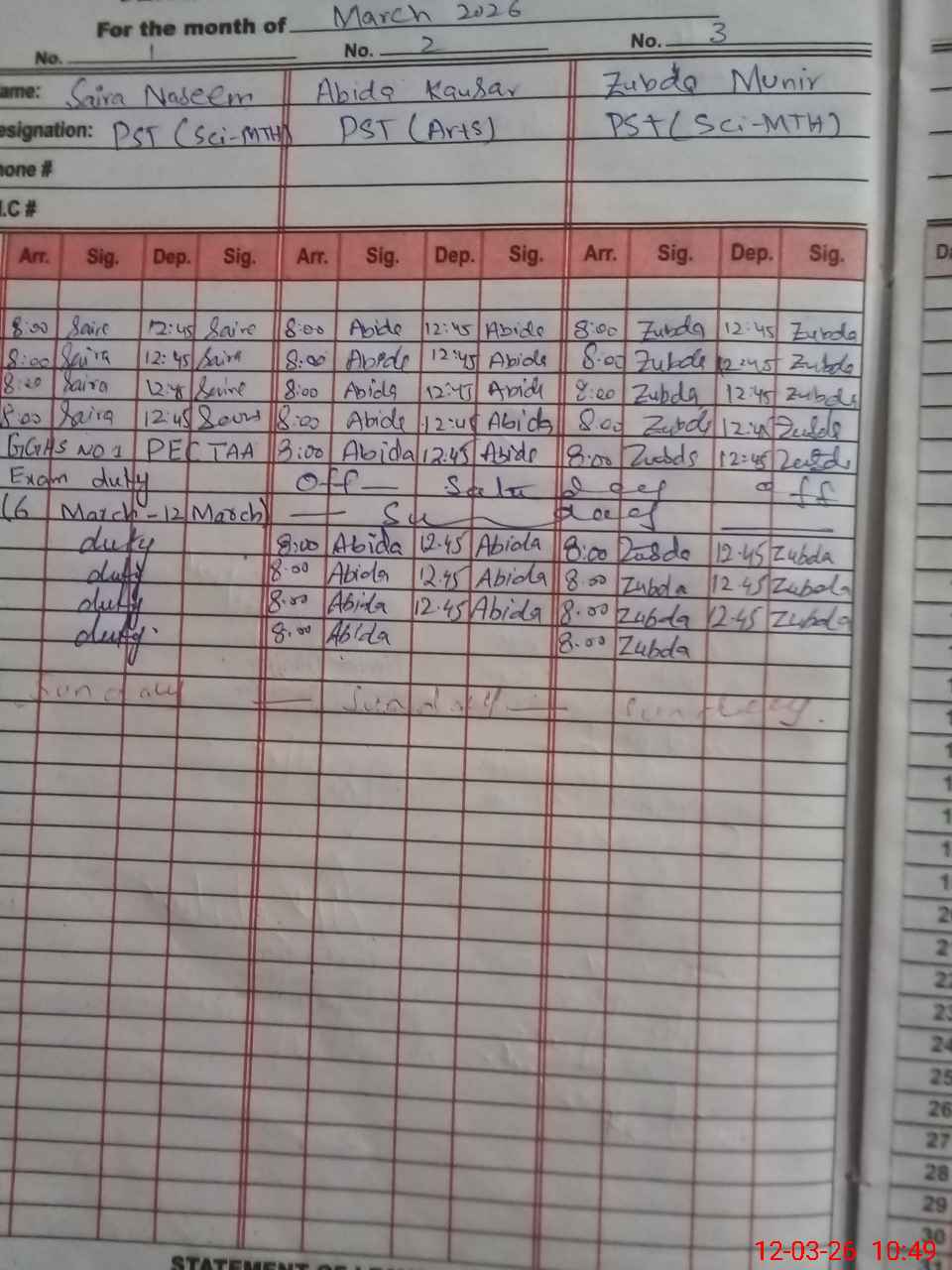| 33**** | Sa**** Na**** | PST Science/Maths | Regular | 0 | 0 | 0 | 0 | 0 | 0 | 0 | 0 | 0 | Exam Duty |