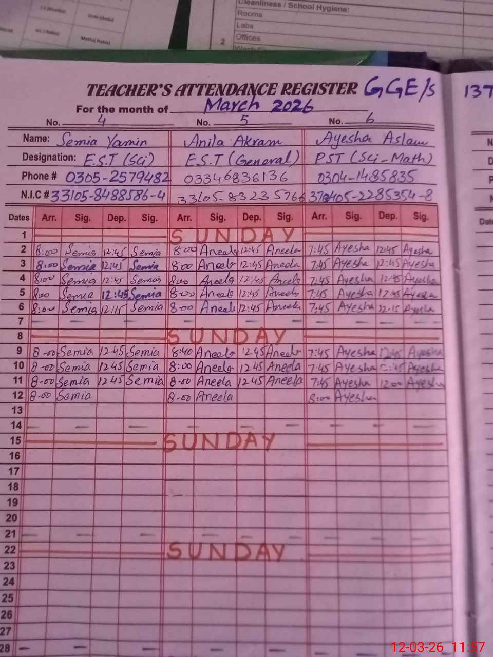 | 33**** | Na**** Ak**** | SST Arts | Regular | 0 | 0 | 0 | 0 | 0 | 0 | 0 | 0 | 0 | Exam Duty |