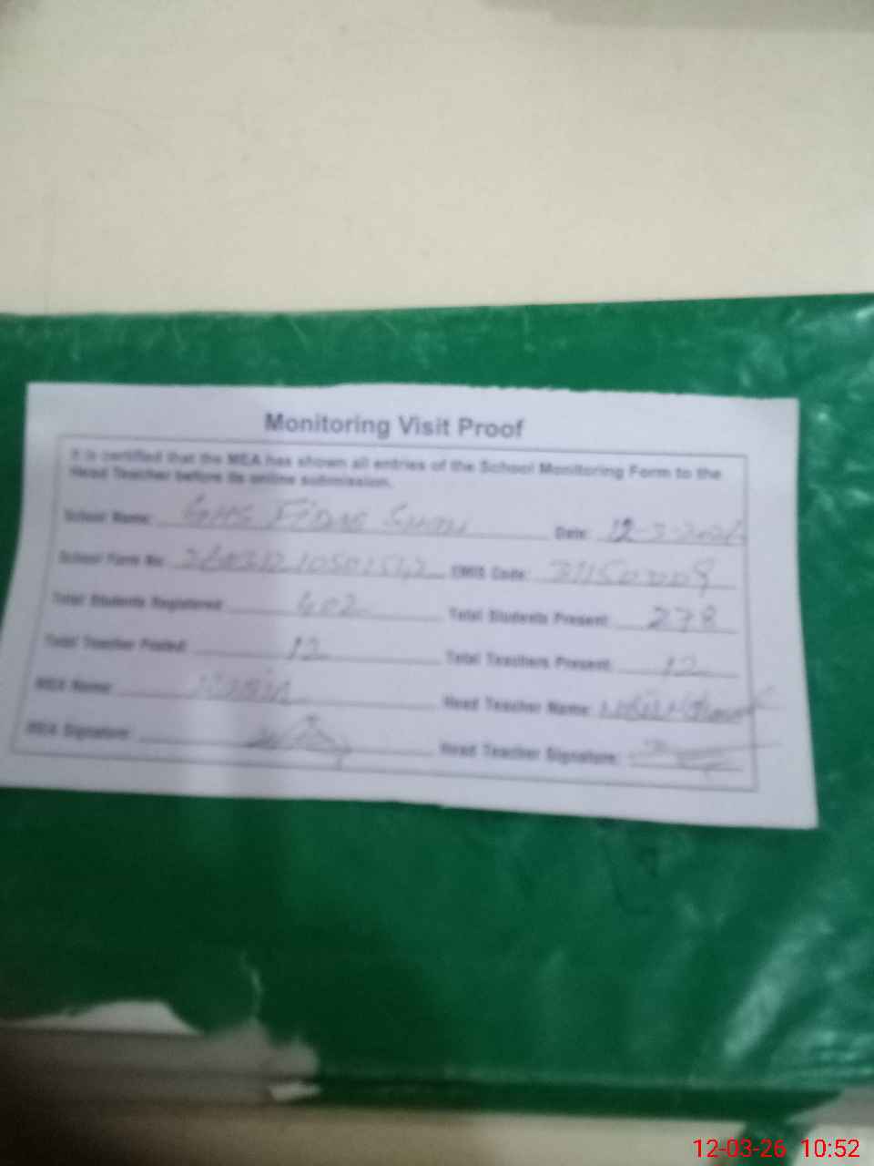| EMIS Code: 31150009 | Name of School: GHS FIDAI SHAH | |||