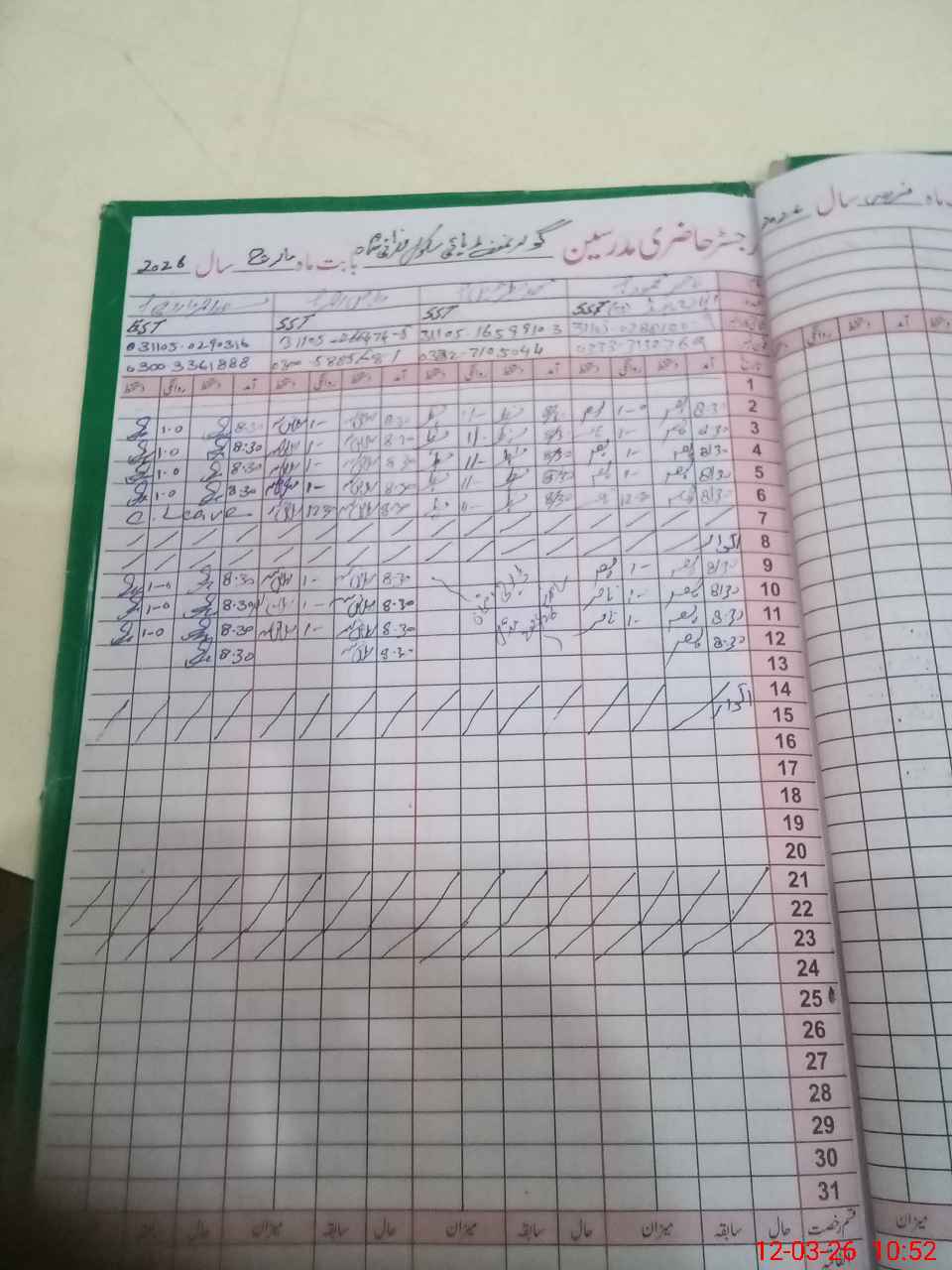 | 31**** | Mu**** Ra**** | PST Arts | Regular | 0 | 0 | 0 | 0 | 0 | 0 | 0 | 0 | 0 | Exam Duty |