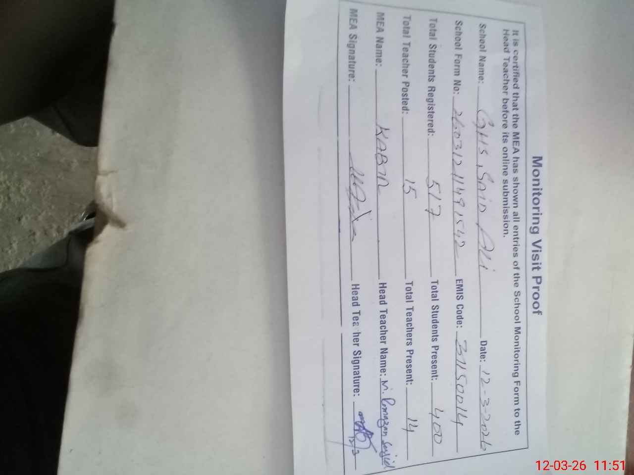 | EMIS Code: 31150014 | Name of School: GHS SAID ALI | |||