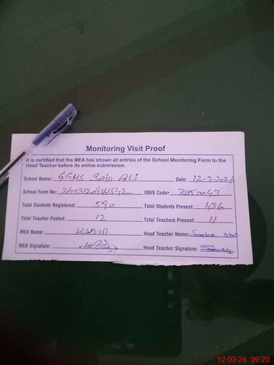 | EMIS Code: 31150043 | Name of School: GGHS SAID ALI | |||