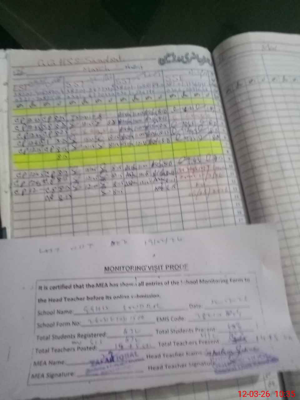 | Remarks (Use Separate Page if Required): last visit DEO 19 Feb 26 Total on register 632 Total on sis 638 | |||||