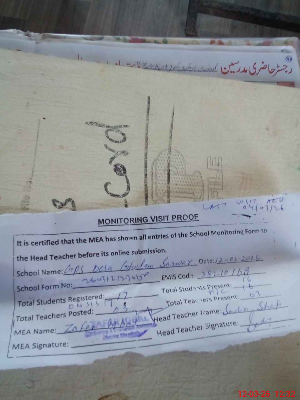 | EMIS Code: 38210169 | Name of School: GPS DERA GHULAM SARWAR | |||