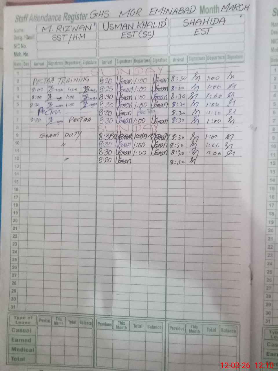 | 34**** | Mu**** Ri**** | SST (Drawing) | Regular | 0 | 0 | 0 | 0 | 0 | 0 | 0 | 0 | 0 | Exam Duty |