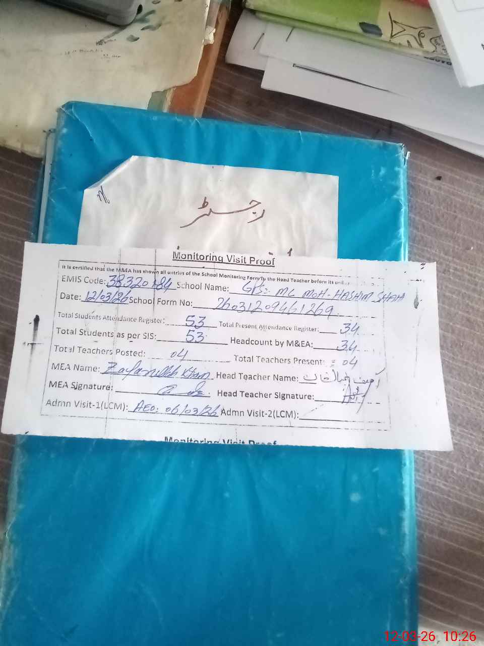 | EMIS Code: 38320184 | Name of School: GPS MC MOHALLAH HASHIM SHAH | |||