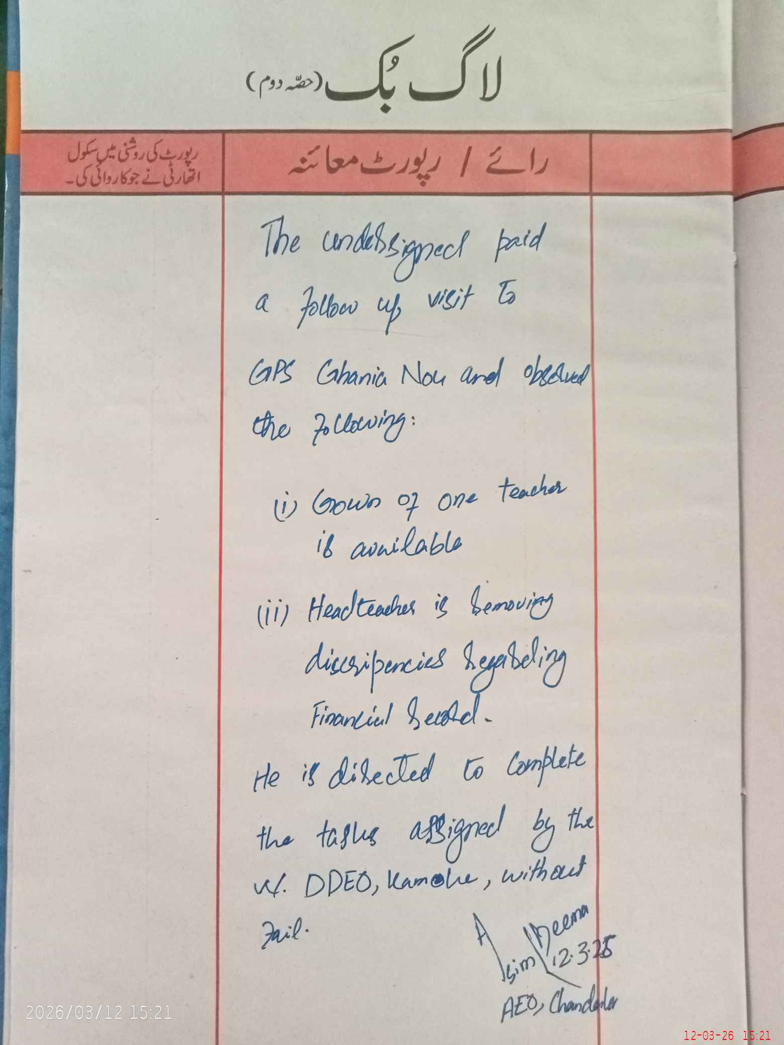 | Name: SU**** Designation: (School Headmaster's/Headmistress's) PST/PTC/JV Phone/Cell Number: 03**** |