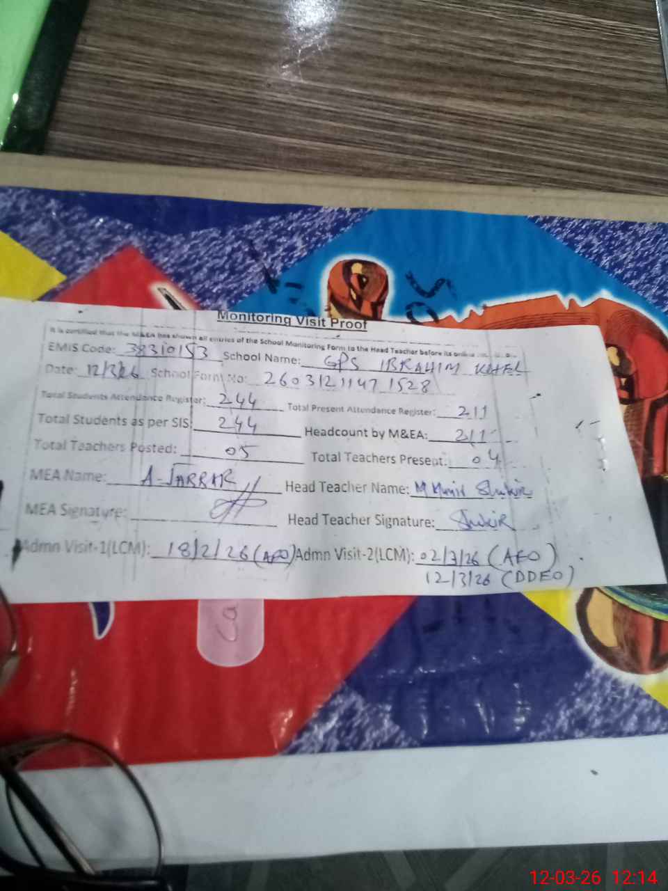 | EMIS Code: 38310153 | Name of School: GPS IBRAHIM KHEL PO TRAGH ISA KHEL MIANWALI | |||