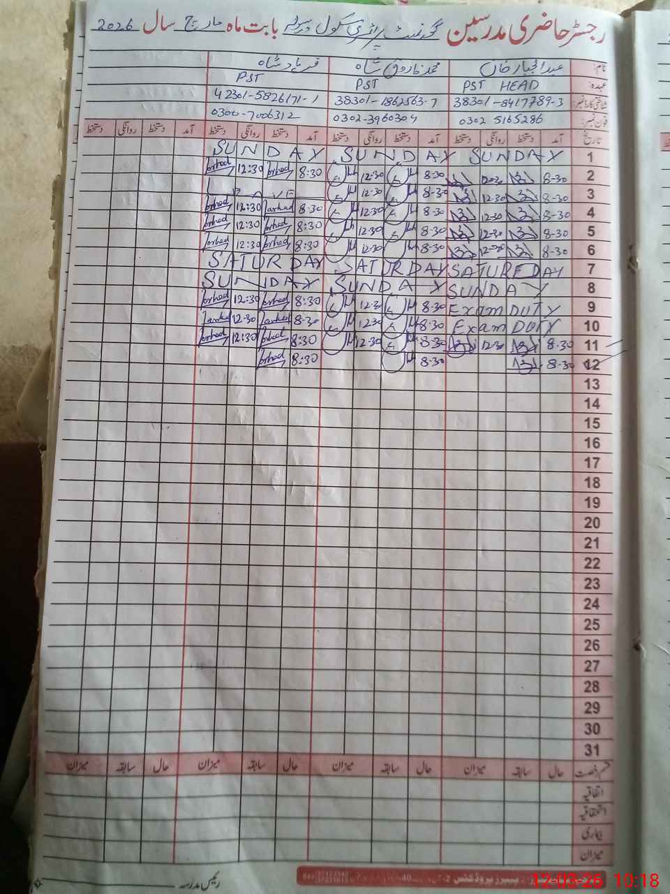 | 38**** | Al**** Hu**** Sh**** | PST Science/Maths | Regular | 0 | 0 | 0 | 0 | 0 | 0 | 0 | 0 | 0 | Exam Duty |