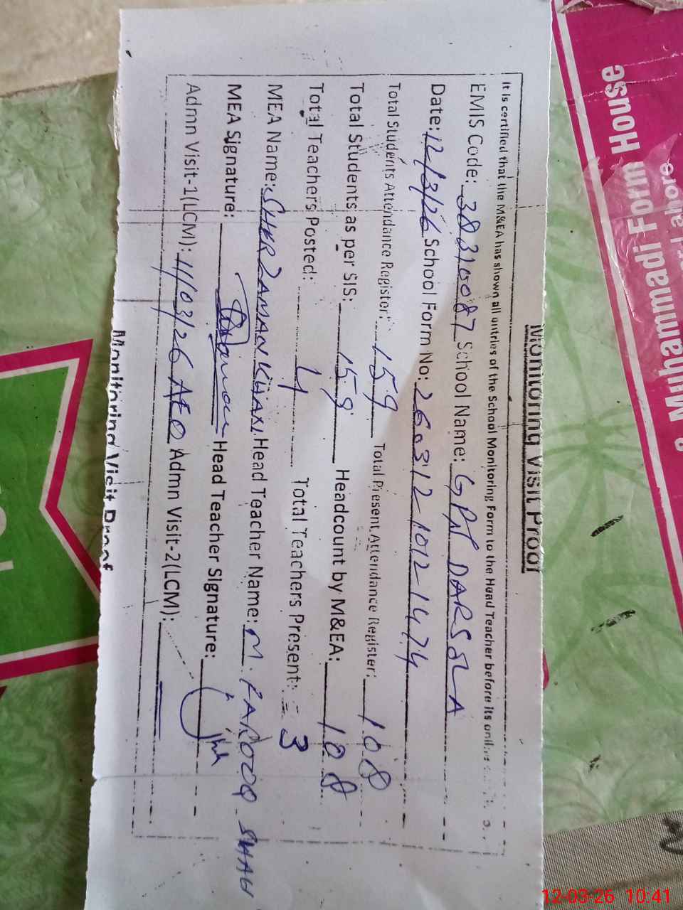 | EMIS Code: 38310087 | Name of School: GPS DARSOLA P/O AWANAN WALA | |||