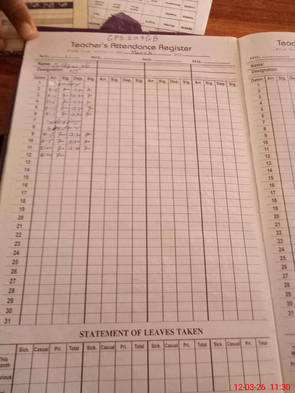 | Remarks (Use Separate Page if Required): CLASS katchi and class two having no exam today, so they are on off. | |||||