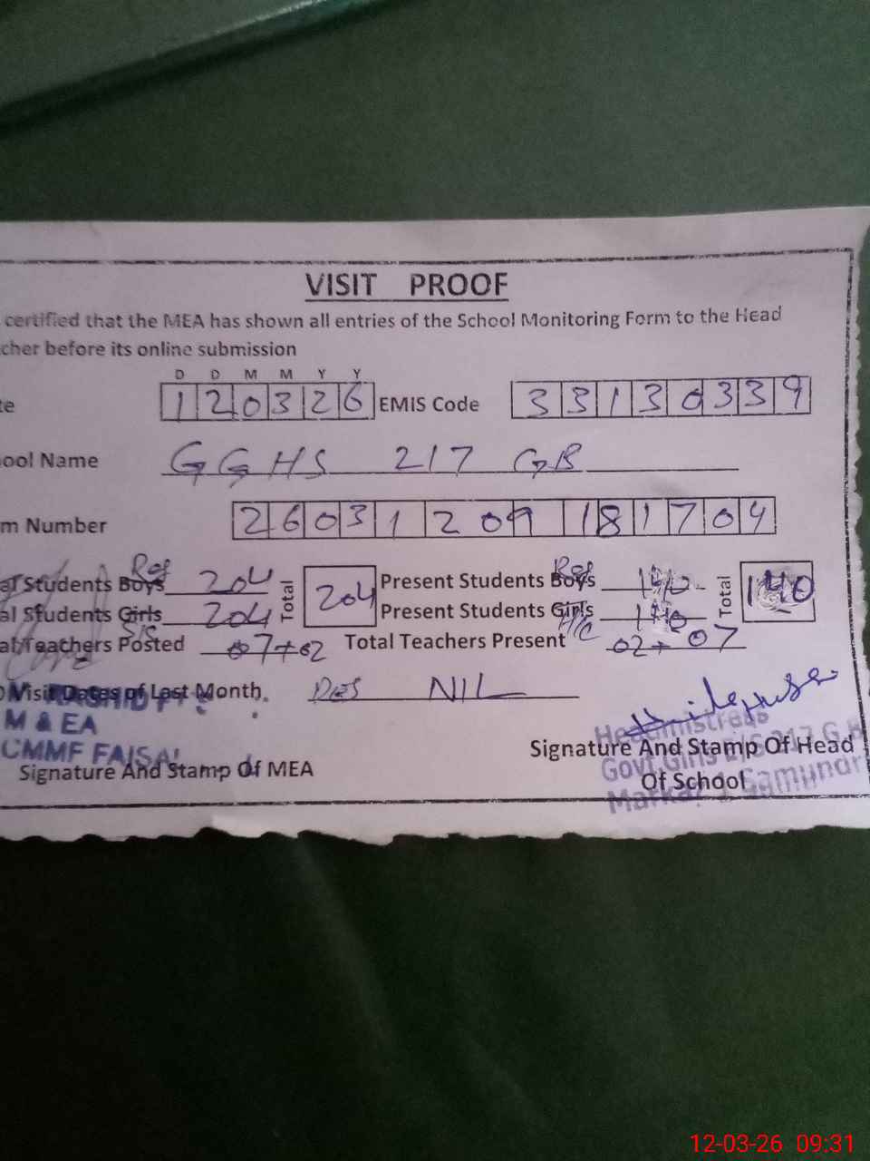 | EMIS Code: 33130339 | Name of School: GGHS CHAK NO.217/GB | |||