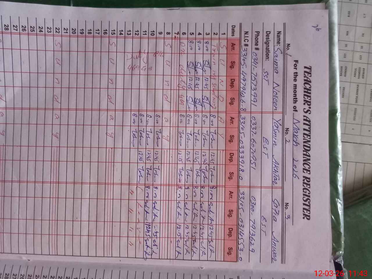 | Name: SA**** NO**** Designation: (School Headmaster's/Headmistress's) SST (GENERAL) Phone/Cell Number: 03**** |