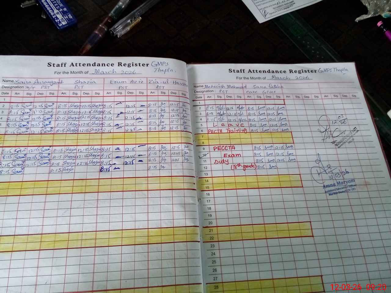 | 37**** | Me**** Me**** | PST Arts | Regular | 1 | 0 | 0 | 0 | 0 | 0 | 0 | 0 | 1 | Exam Duty |