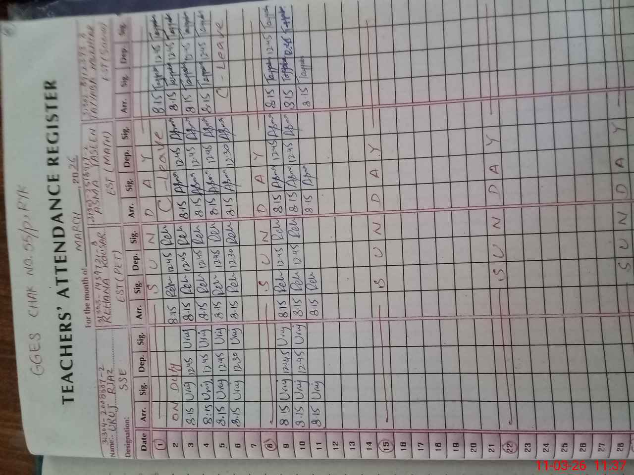 | CNIC | Full Name | Designation | R/C | Absence During Last Calender Month |