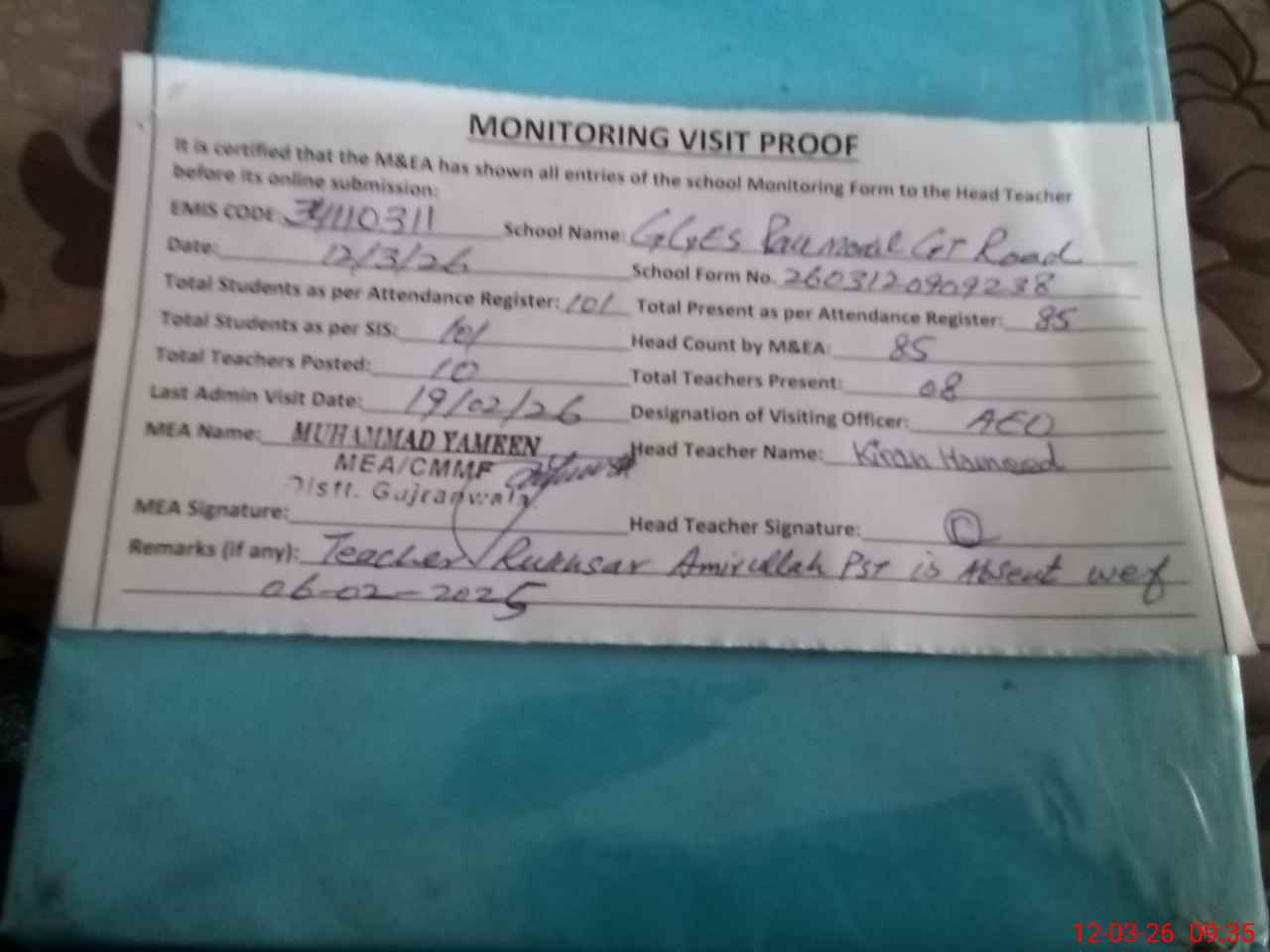 | EMIS Code: 34110311 | Name of School: GGES PAK MODEL G.T. ROAD | |||