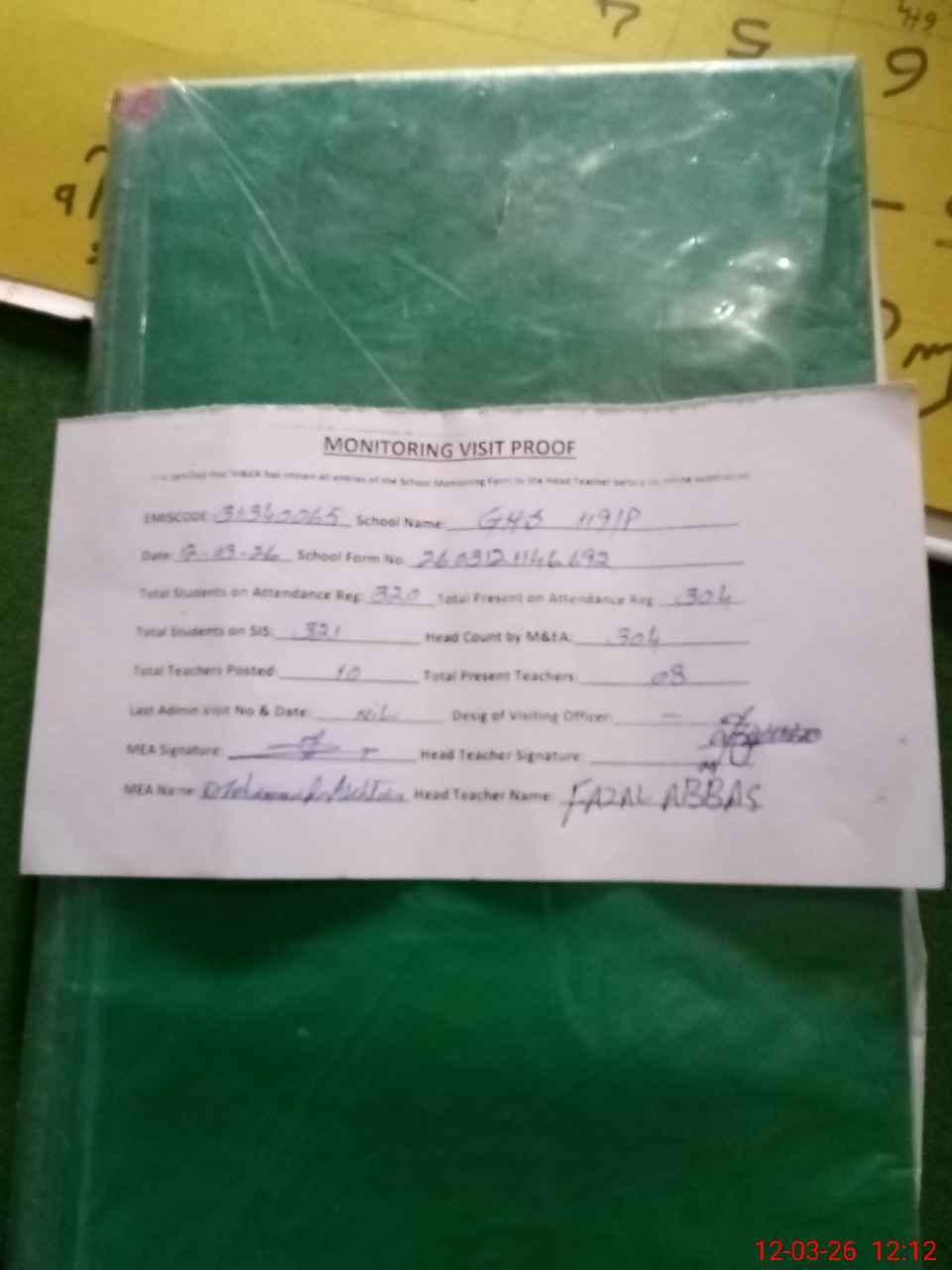 | Attendance Register | Head Teacher | MEA with School | Visit Proof |