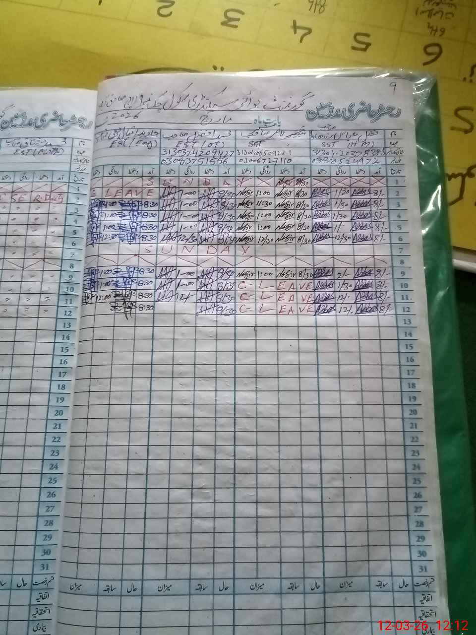 | CNIC | Full Name | Designation | R/C | Absence During Last Calender Month |