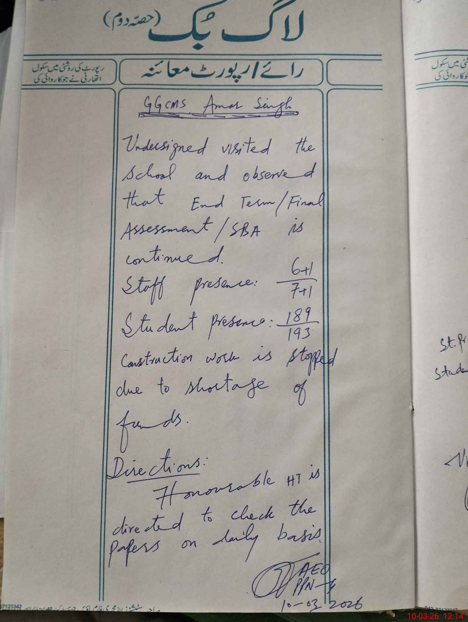 | EMIS Code: 39210410 | Name of School: GGCMS AMAR SINGH | |||