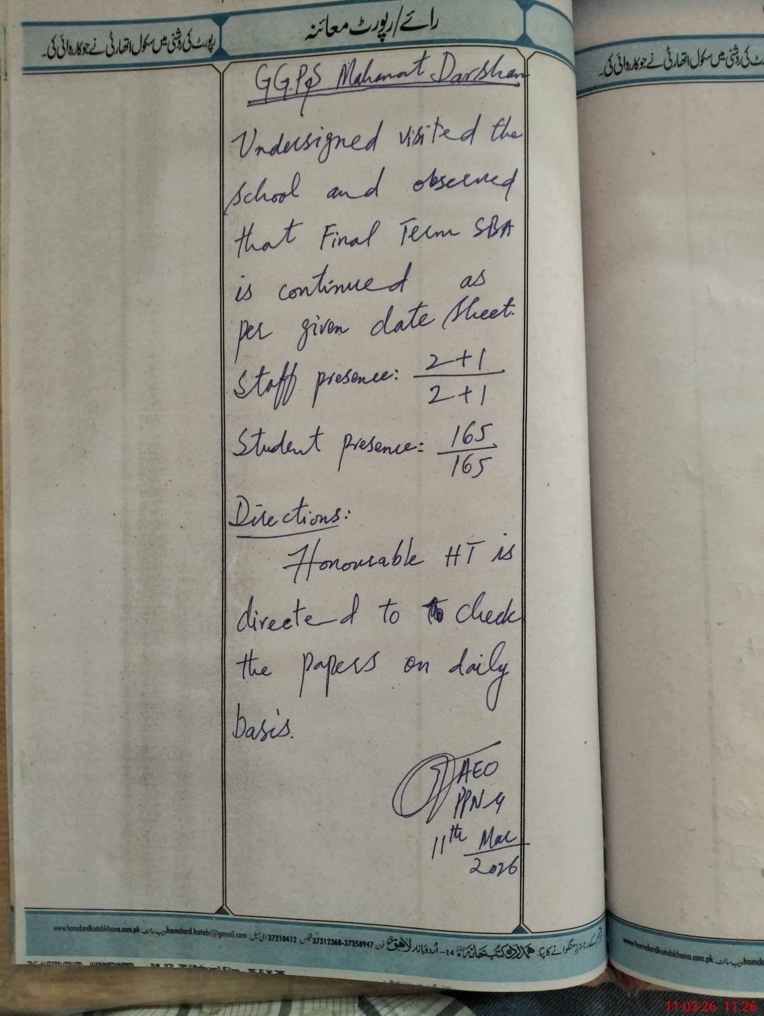 | Certified that this School was Inspected by the Undersigned MEA/DMO Today and the Information Stated Above is as Per Record. | |||||