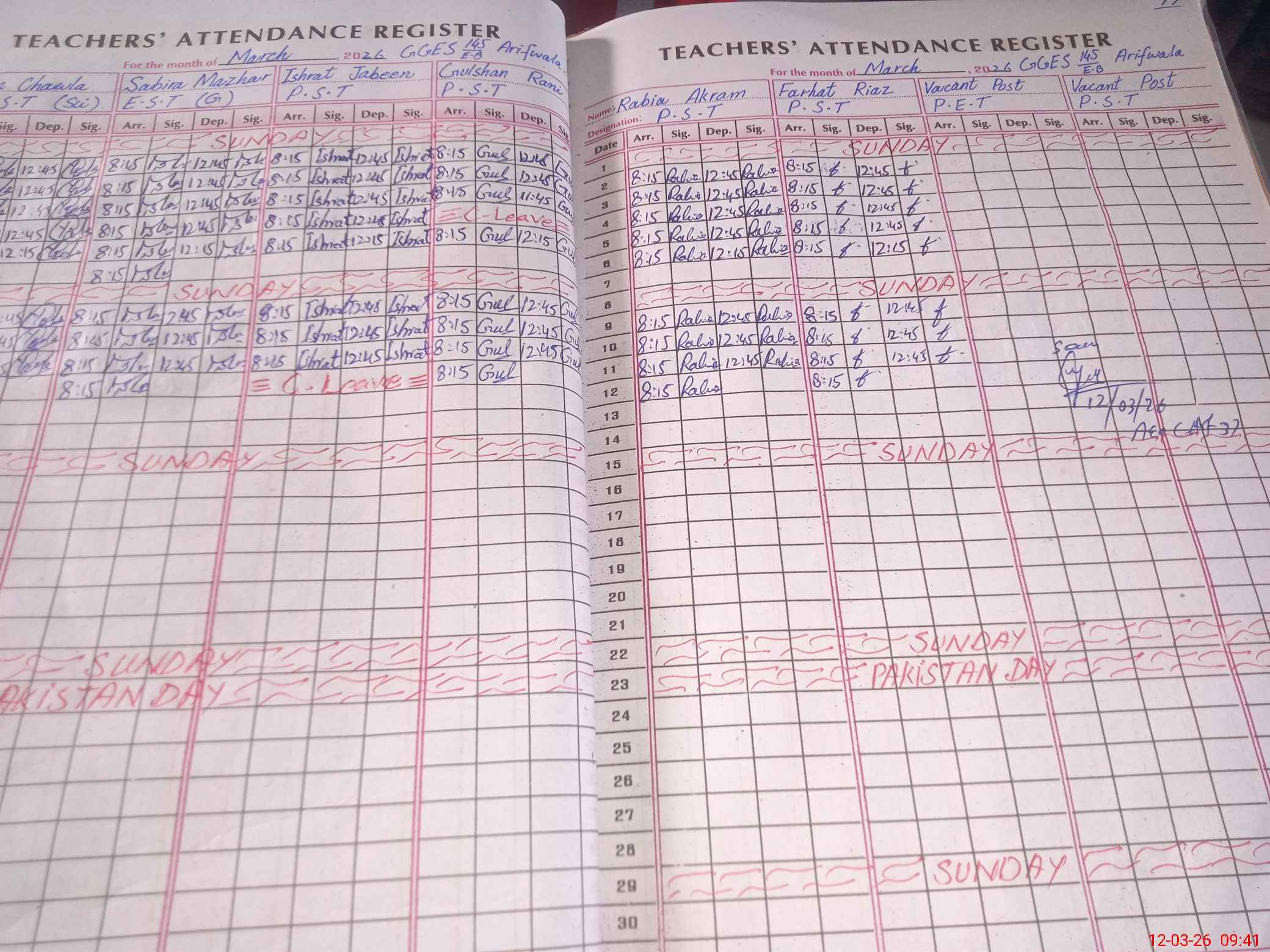| 36**** | Fo**** Ra**** | SST Arts | Regular | 0 | 0 | 0 | 0 | 0 | 0 | 0 | 0 | 0 | Exam Duty |