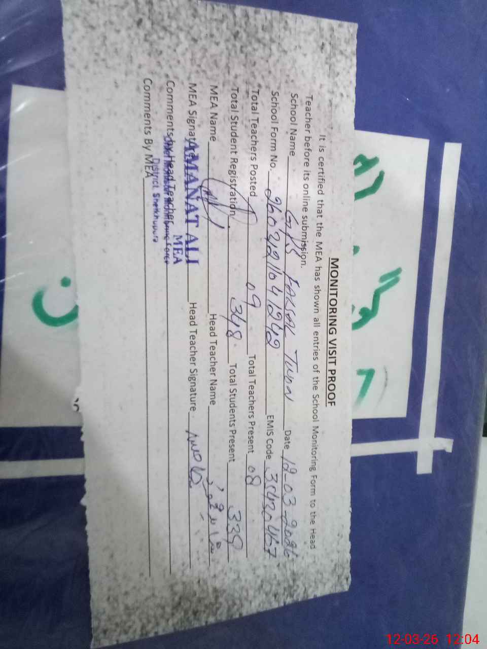 | EMIS Code: 35430467 | Name of School: GPS FAISAL TOWN | |||