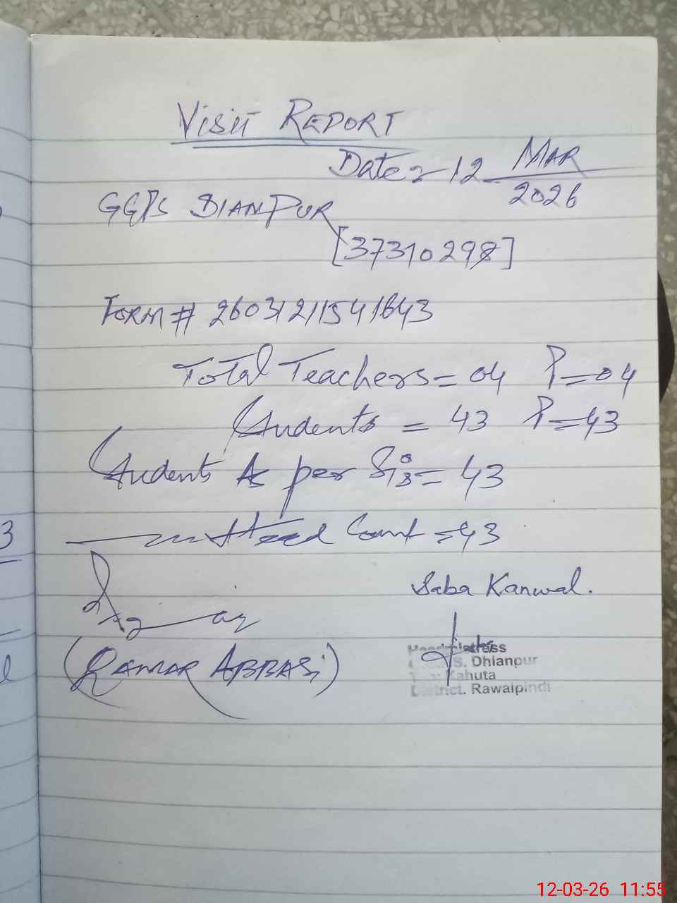 | EMIS Code: 37310298 | Name of School: GGPS DHIANPUR | |||