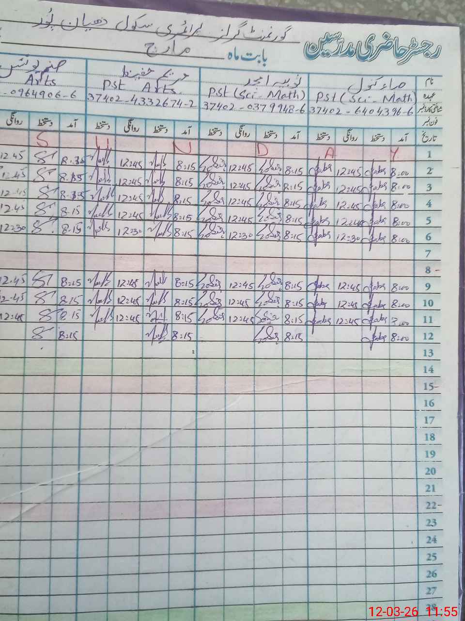 | Name: Sa**** Ka**** Designation: (School Headmaster's/Headmistress's) PST Sci Math Phone/Cell Number: 03**** |