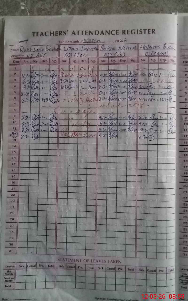 | 42**** | Uz**** Pa**** | SST Science | Regular | 1 | 0 | 0 | 0 | 0 | 0 | 0 | 0 | 1 | Exam Duty |