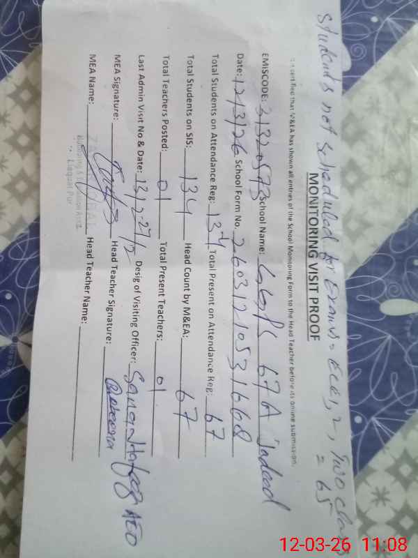 | Attendance Register | Head Teacher | MEA with School | Visit Proof |
