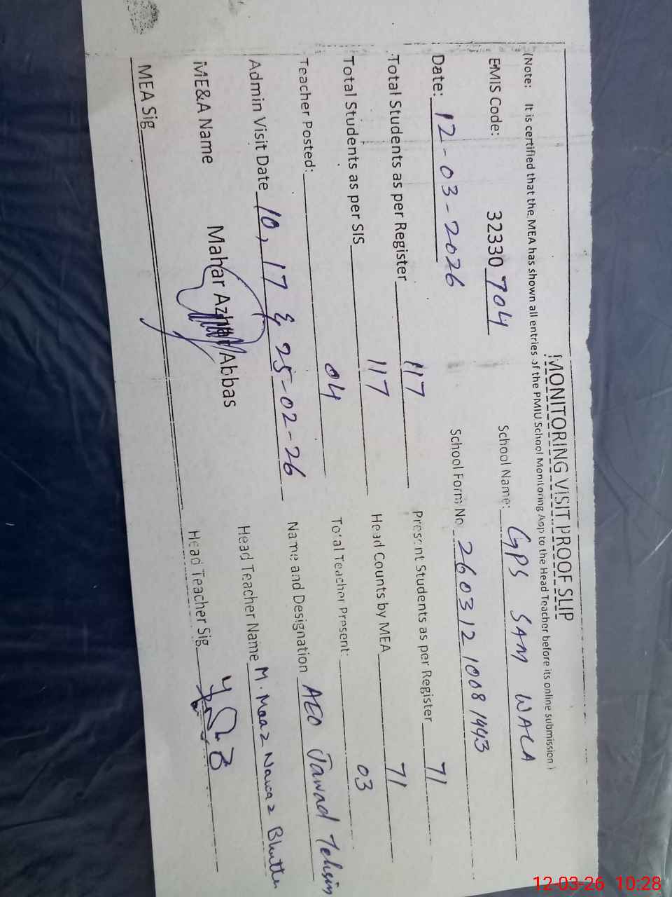 | EMIS Code: 32330704 | Name of School: GPS SAM WALA | |||