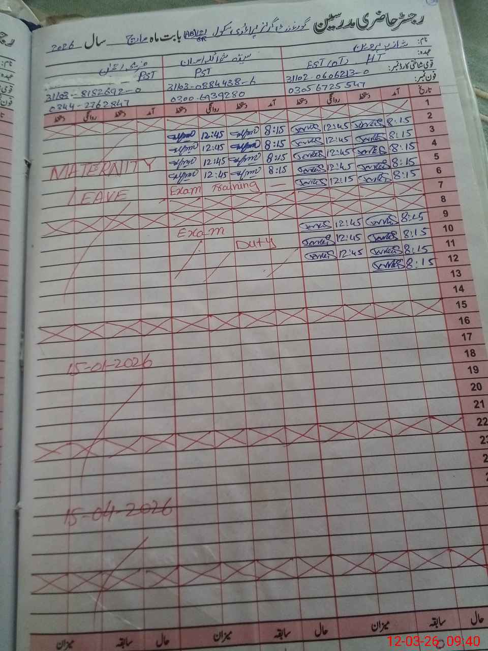 | 31**** | Sy**** Sh**** Ih**** | PST Arts | Regular | 0 | 0 | 0 | 0 | 0 | 0 | 0 | 0 | 0 | Exam Duty |