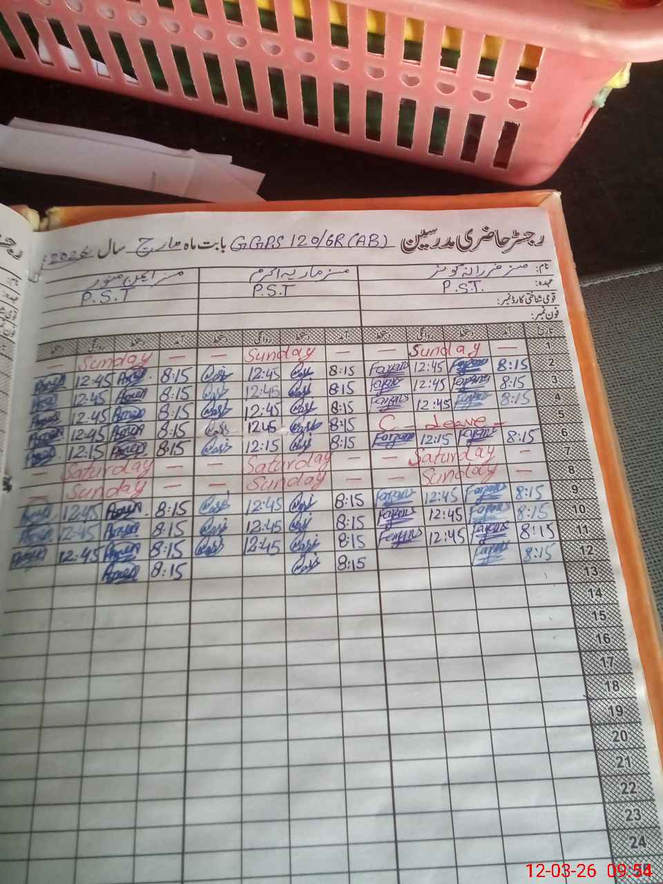 | CNIC | Full Name | Designation | R/C | Absence During Last Calender Month |