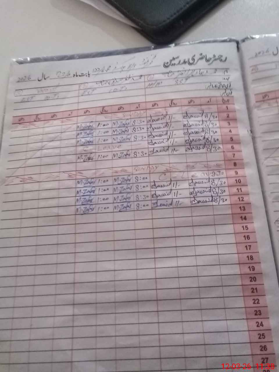 | CNIC | Full Name | Designation | R/C | Absence During Last Calender Month |