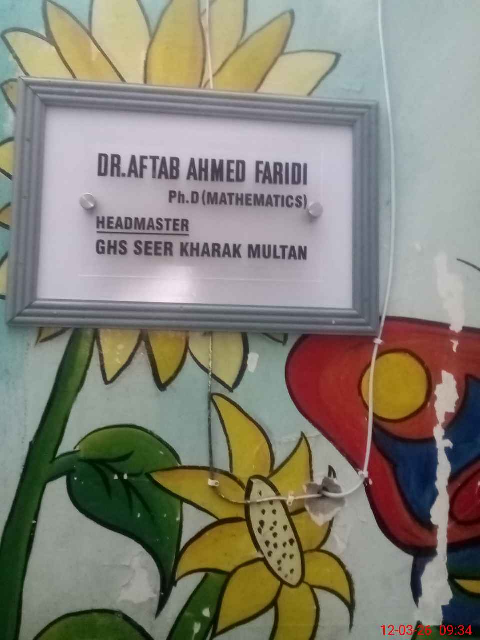 | Name: SA**** RA**** Designation: (School Headmaster's/Headmistress's) H M Phone/Cell Number: 03**** |