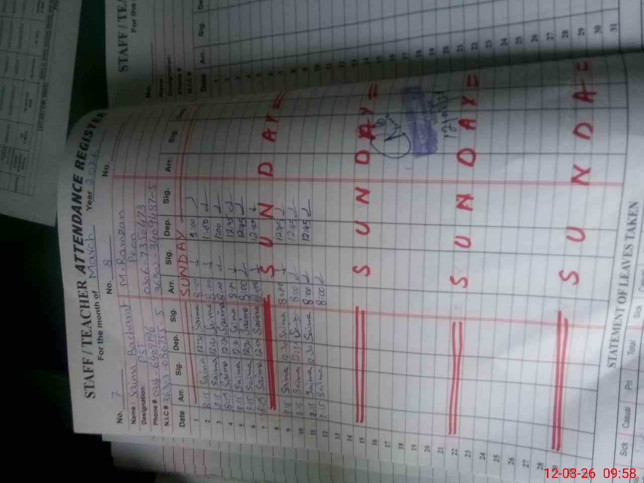 | Name: Ra**** Na**** Designation: (School Headmaster's/Headmistress's) PST/PTC/JV Phone/Cell Number: 03**** |