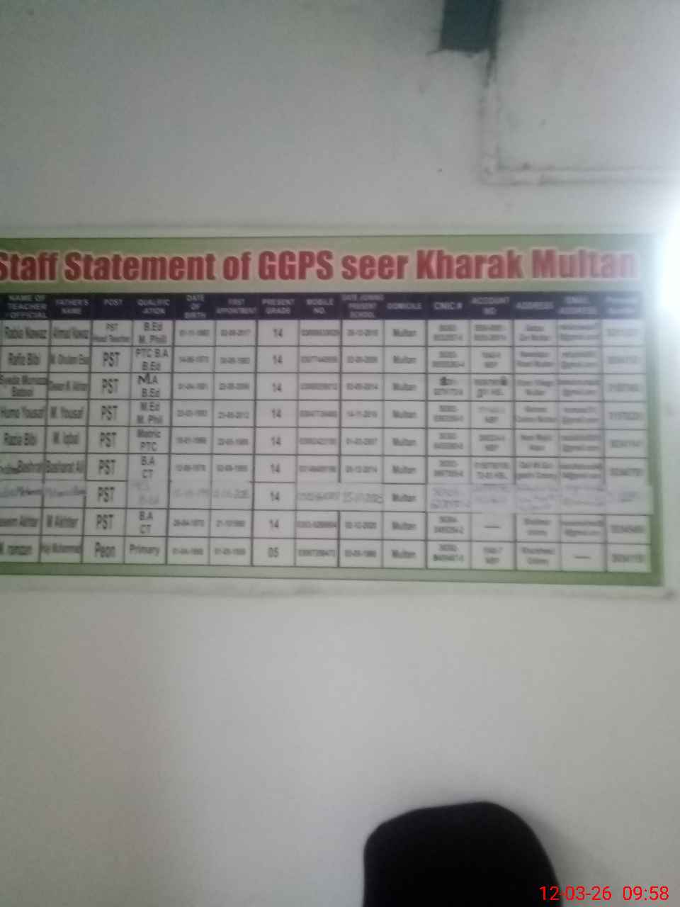 | EMIS Code: 36110224 | Name of School: GGPS SEER KHARAK NEAR GULSHAT COLONY | |||