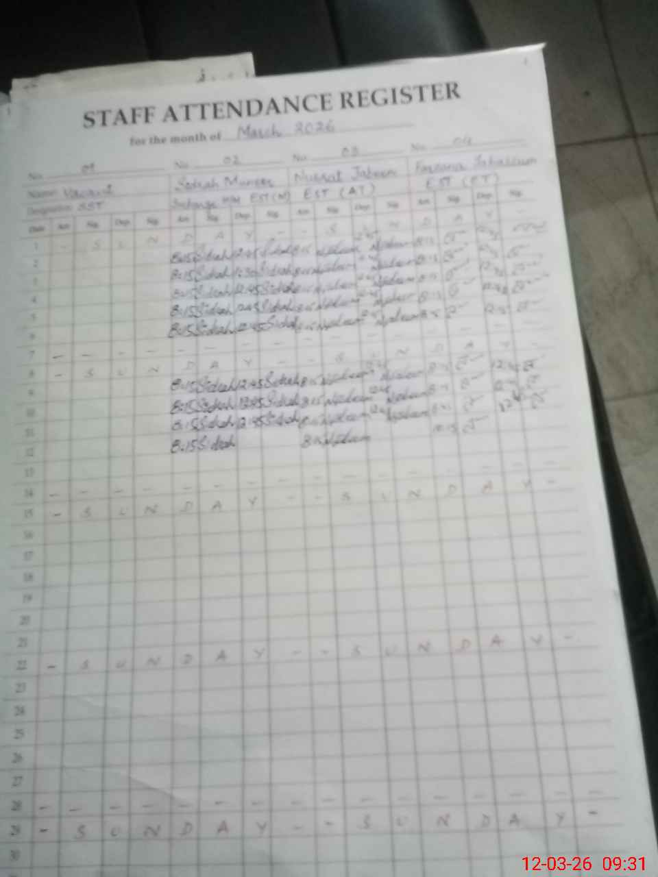 | 38**** | An**** Ta**** | PST Science/Maths | Regular | 0 | 0 | 0 | 0 | 0 | 0 | 0 | 0 | 0 | Exam Duty |