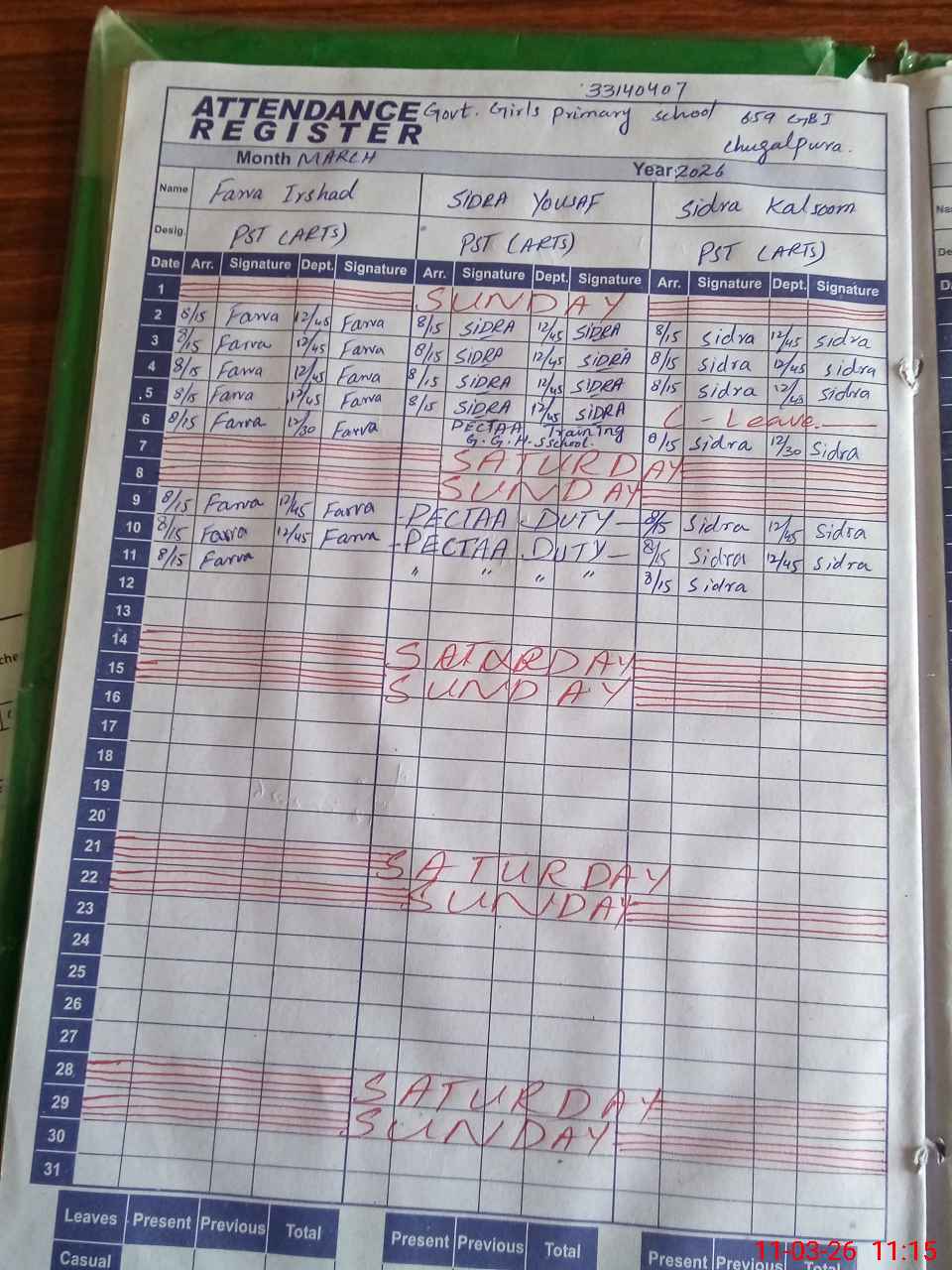 | 33**** | Si**** Yo**** | PST Arts | Regular | 0 | 0 | 0 | 0 | 0 | 0 | 0 | 0 | 0 | Exam Duty |
