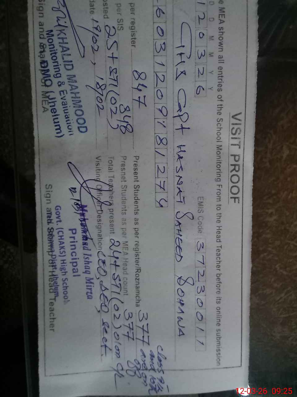 | EMIS Code: 37230011 | Name of School: GHS CAPTAIN HASNAT SHAHEED SOHAWA | |||