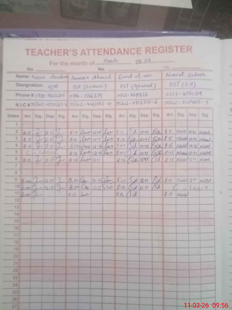 | 34**** | Kh**** Ba**** | PST Science/Maths | Regular | 0 | 0 | 0 | 0 | 0 | 0 | 0 | 0 | 0 | Exam Duty |