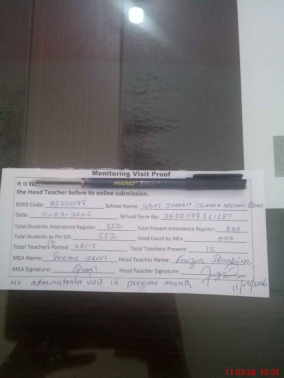 | EMIS Code: 35220149 | Name of School: GGHS JINNAH ISLAMIA MOHNI ROAD(Newly Upgraded) | |||