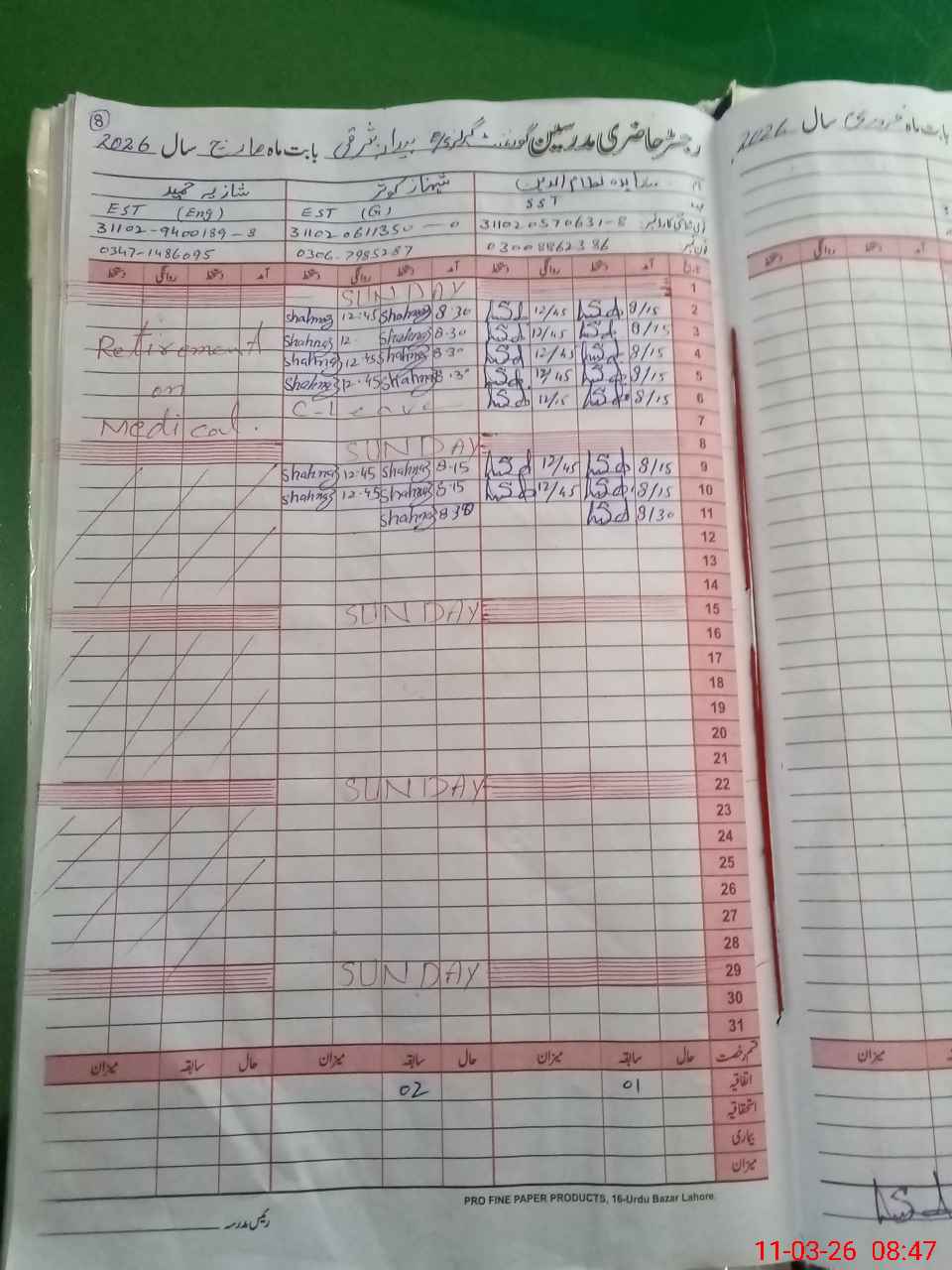 | Remarks (Use Separate Page if Required): letter of retirement on medical ground not shown to mea of teacher Shazia Hameed and No visit of the aeo in the month of Feb 2026 and nsb record register not maintained | |||||