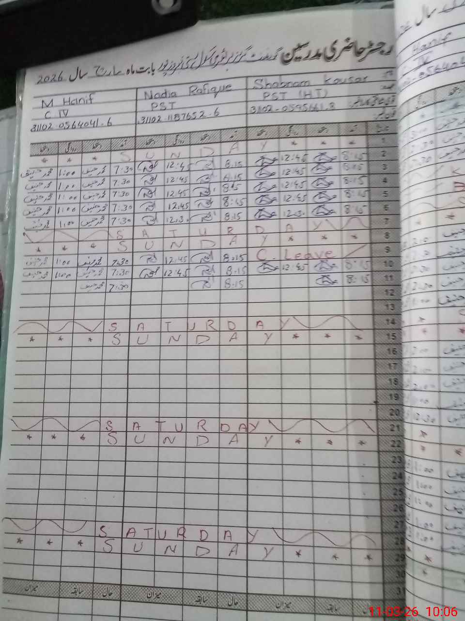 | CNIC | Full Name | Designation | R/C | Absence During Last Calender Month |