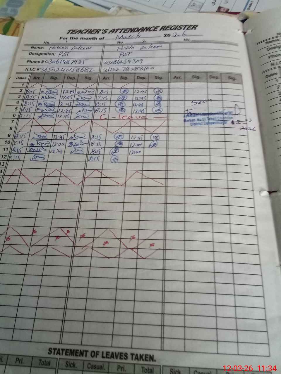 | Name: No**** Sa**** Designation: (School Headmaster's/Headmistress's) PST Phone/Cell Number: 03**** |
